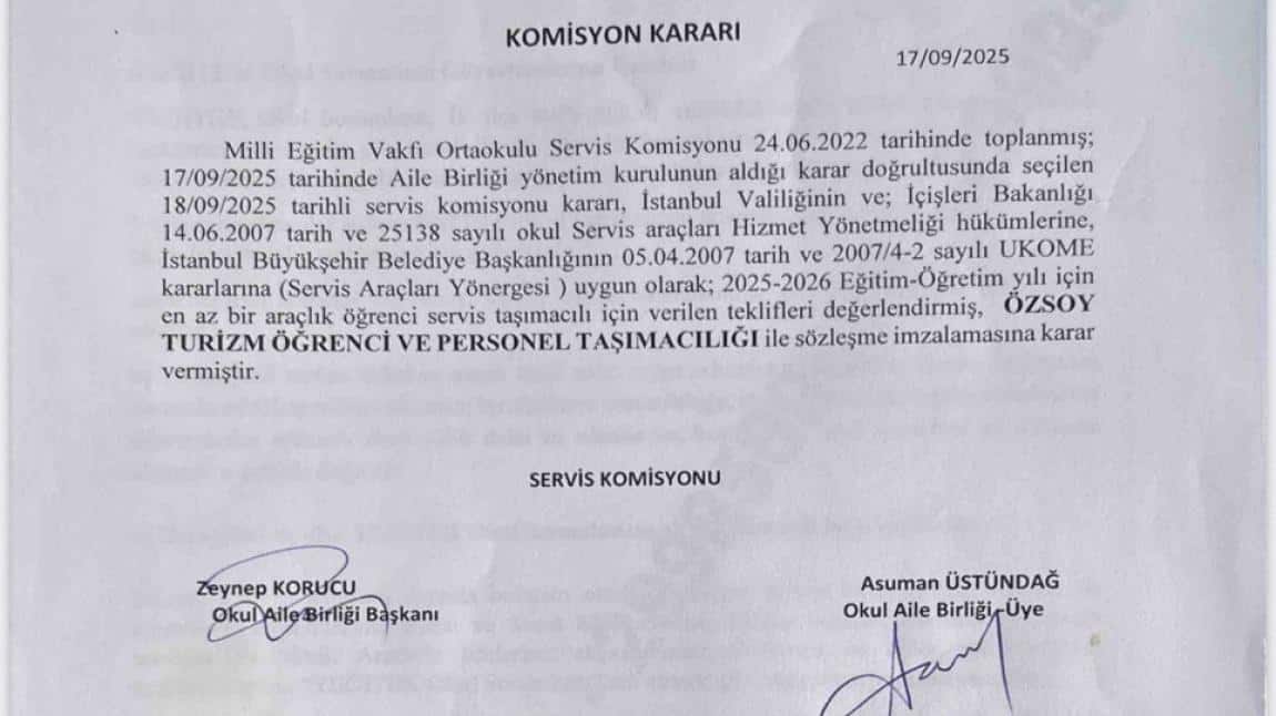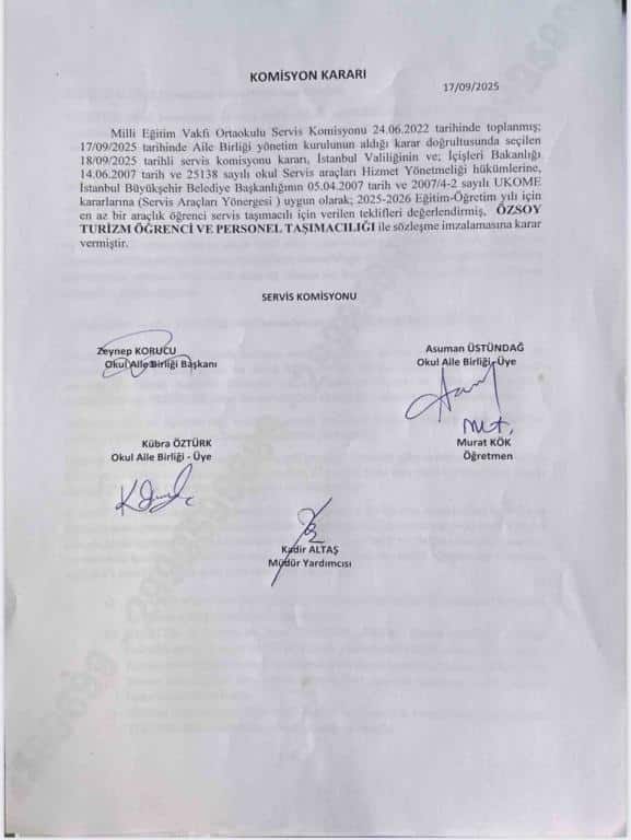 Okul Taşımacılık Komisyon Kararı Tutanağı